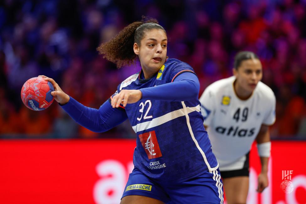 Le début de match n’est pas aussi étincelant que face au Danemark, mais les Françaises sont bien organisées. Comme à l’accoutumée lors des derniers matchs, c’est Clarisse Mérot qui ouvre le score pour les Françaises. Côté allemand, Viola Leuchter est en feu et se crée des trous dans la défense française (3-3, 8’). Les Françaises, en supériorité numérique, trouvent les intervalles mais butent sur Katharina Filter, et l’Allemagne crée le break à une de moins (4-6, 11’). Les Allemandes, nettement plus solides en défense, gagnent leurs duels et Lisa Antl vient donner quatre buts d’avance, obligeant Sébastien Gardillou à poser un temps mort (6-10, 15’). Le sélectionneur français change alors de registre, faisant entrer Florianne André et passant en 1-5, ce qui perturbe les Allemandes (8-10, 18’). Katharina Filter vient défier Sarah Bouktit sur jet de 7 mètres, mais avec un lob tout en finesse, les Françaises ne sont plus qu’à une longueur (10-11, 20’).