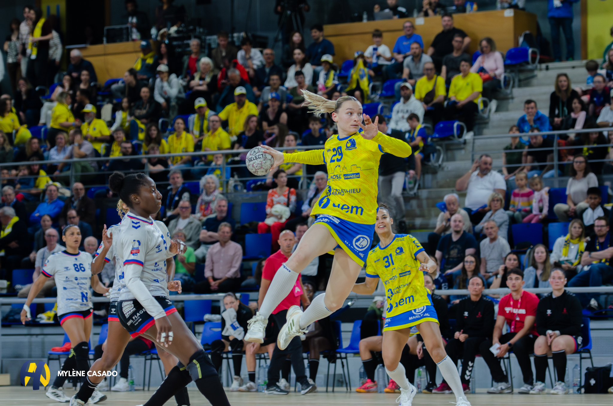 À l'entame des dix dernières minutes, un passage à vide saisit les Messines, surprises par le sursaut d'orgueil norvégien. Car oui, on pensait les Norvégiennes fatiguées ou résignées, mais épaulées par leur gardienne, elles reviennent à trois buts (21-24, 50'). Et les petits signes s'accumulent lorsque Bouktit manque son penalty. En phase de supériorité numérique, Storhamar obtient le penalty transformé par Obaidli. Les Messines n'ont plus marqué depuis maintenant six minutes, conduisant Mayonnade a rappeler ses joueuses (22-24, 51'). Le temps-mort est transformé par Wajoka sur son point de corner, suivie aussitôt par Storhamar. La solution est de nouveau trouvée en attaque, mais les Messines manquent de transformer le penalty obtenu (pour la troisième fois consécutive). Bundsen sort une parade décisive sur Veronika Kafka Mala qui tenait la balle du -1 (23-25, 53'). Le coach norvégien pose son temps-mort, alors qu'il reste moins de cinq minutes a jouer (23-26, 55'). Les Messines ne lâchent rien en défense, et repartent en attaque avec une balle de +4. Grandveau (7/10) trouve Wajoka entrée en deuxième pivot, mais l'ailiére gauche trouve le poteau. On commence a ressouffler dans cette fin de match, après qu'Obaidli est manqué le cadre. Bundsen (11/34) éteint sans doute le dernier espoir sur Mala, malheureusement blessée au mollet sur sa réception (23-27, 58'). La fin de match se déroule sans surprise, et scelle une cinquième victoire en Ligue des champions pour les Messines (24-27, SF).