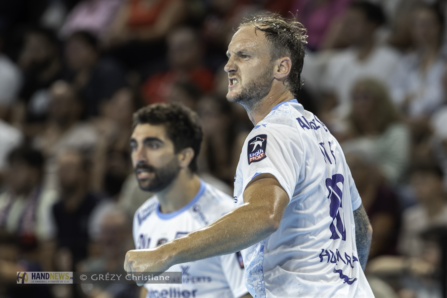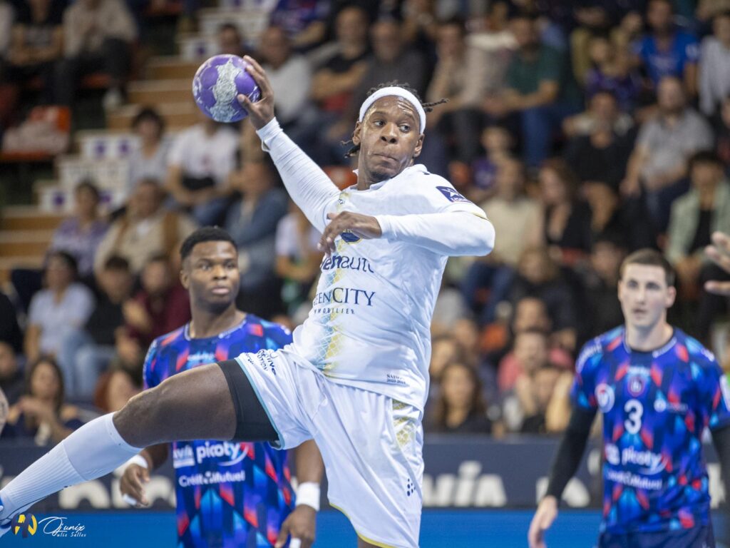 Pour les Montpelliérains, après deux revers de suite en championnat, il était important de se rassurer dans leur écrin, face à une solide équipe de Tremblay. Bryan Monte montre le chemin aux Montpelliérains (8-4, 11’). Charles Bolzinger est également au rendez-vous (9 arrêts sur 20 à la mi-temps, 45%), lançant la fusée Balaguer en contre-attaque. Tremblay fait bonne figure en défense, mais Montpellier trouve Moraes en toute fin de possession (12-6, 16’). Un Tremblay en perdition tente d’exister en attaque, difficilement (14-8, 20’). Les Montpelliérains donnent l’illusion de former une ligne infranchissable, avec un Bolzinger qui veille au grain, et la première mi-temps tourne à la démonstration (18-9, 26’), forçant Cherif Hamani à poser un deuxième temps mort. Les leaders franciliens n’y sont pas : Rubens Pierre affiche un maigre 15 % d’arrêts, la paire Fadhuile-Clair plafonne à 36 %, et Montpellier rentre aux vestiaires avec… dix longueurs d’avance (21-11, mi-temps).