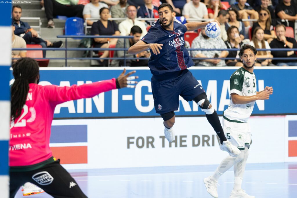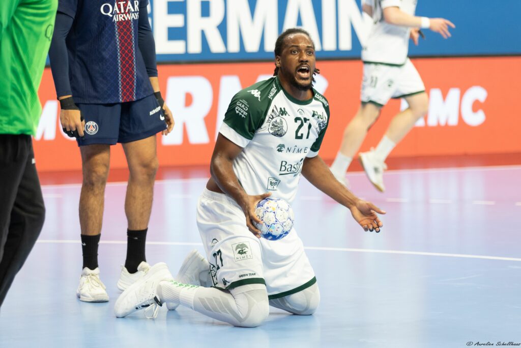 A Coubertin, l’enjeu est clair : le vainqueur de ce PSG-Nîmes rejoindra Montpellier en tête du championnat à l’issue de la troisième journée. Côté parisien, Noah Gaudin et Gauthier Lauredon débutent. D’entrée, le tir de l’ancien de la maison, Yoan Gibelin, est arrêté, puis Konan et Yaya frappent coup sur coup au même endroit pour offrir un premier break aux Parisiens (2-0, 2’). Devant, Elohim Prandi se montre à dix mètres (5 sur 6 en première période). Sans forcer, le PSG prend progressivement le large (12-8, 19’), face à une défense nîmoise en difficulté, souvent débordée sur les extérieurs. Mais Lou Derisbourg, par son activité défensive et offensive, relance son équipe. Comme jeudi face à Pelister, Paris relâche son étreinte et les Nîmois en profitent pour revenir en embuscade juste avant la pause (18-17, 30’).