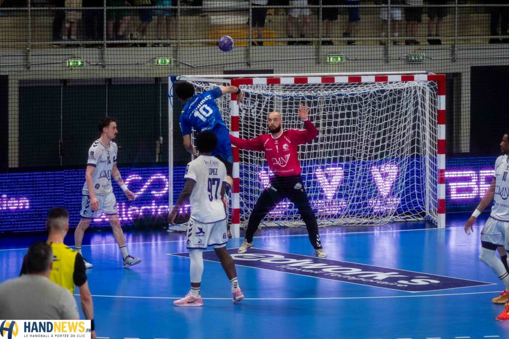 Coup d’arrêt également pour Caen, battu sur le terrain de Pau-Billère. Dominés à la pause (17-14), les Vikings ont sombré dès le retour des vestiaires, incapables de contenir les assauts billérois et de battre Kalim Zahaf et ses 13 arrêts à 31%. L’écart est trop conséquent pour être comblé : Caen s’incline 38 à 32 et se voit aussi distancé par le leader, Cournon.