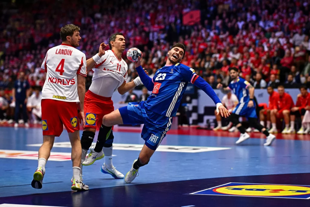 Incapables de creuser l’écart, les Bleus voient les Danois recoller, puis passer devant (26-27, 55’). L’ambiance devient irrespirable. Solides défensivement en première période, les Tricolores cèdent peu à peu face aux assauts danois (27-29, 57’). Dans les derniers instants, l’équipe de France opte pour une défense en 3-3 afin de stopper les Danois plus haut. En vain. Plus réaliste et portée par un Emil Nielsen décisif jusqu’au bout, élu homme du match, le Danemark fait définitivement plier les Bleus (32-29). Le Danemark prend de l’air et peut encore croire au dernier carré, tandis que la France, elle, a grillé son « joker ».