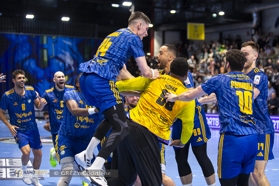 Mais Nantes n’abdique pas. Ignacio Bisoca remplace Ivan Pesic dans les cages et le portier espagnol effectue plusieurs parades décisives qui permettent enfin aux siens d’égaliser dans le money-time (28-28, 54e). Si Grégoire Plat redonne deux buts d’avance aux Alsaciens (29-31, 58e), Aymeric Minne, l’homme du moment pour les fins de match, a de nouveau sorti sa cape de héros. Encore derrière au score à 55 secondes du coup de sifflet final, le « H » égalise rapidement grâce à son international français. Mieux encore, ce dernier marque le but de la victoire à huit secondes du coup de sifflet final, à l’instar de celui qu’il a inscrit trois jours plus tôt sur le parquet de GOG en Ligue des Champions.