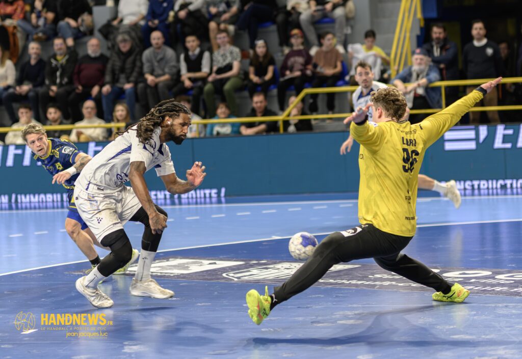 En Moselle, Sarrebourg accueillait Caen, le leader du championnat. Les Normands se détachent juste avant la mi-temps autour d’un grand Louis Tournellec (10/12 au tir) : 12-17 à la pause. Mais les Yellow Fox sont difficiles à manœuvrer à domicile. Sarrebourg revient tout près (19-20, 40’) malgré l’expulsion de son pivot Yanis Abie Resende. Les Mosellans parviennent même à égaliser (25-25, 50’), avant le carton rouge de Pierre Frechou, l’un des patrons de la défense. Caen garde la tête froide et évite le piège sarrebourgeois pour s’imposer 32-28.
